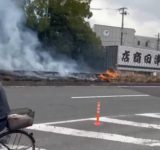 【火事情報】#交通情報 大阪高槻京都線 大阪府茨木市宮島1丁目付近 中央分離帯燃える枯草火災2月16日 #大阪 #茨木 #火災