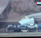 【現場の様子】#交通情報 山麓バイパス 東行き 雲雀ヶ丘大橋~天王谷料金所付近 大型トラックなどからむ多重事故で通行止め渋滞4月8日 #山麓バイパス #兵庫県 #神戸